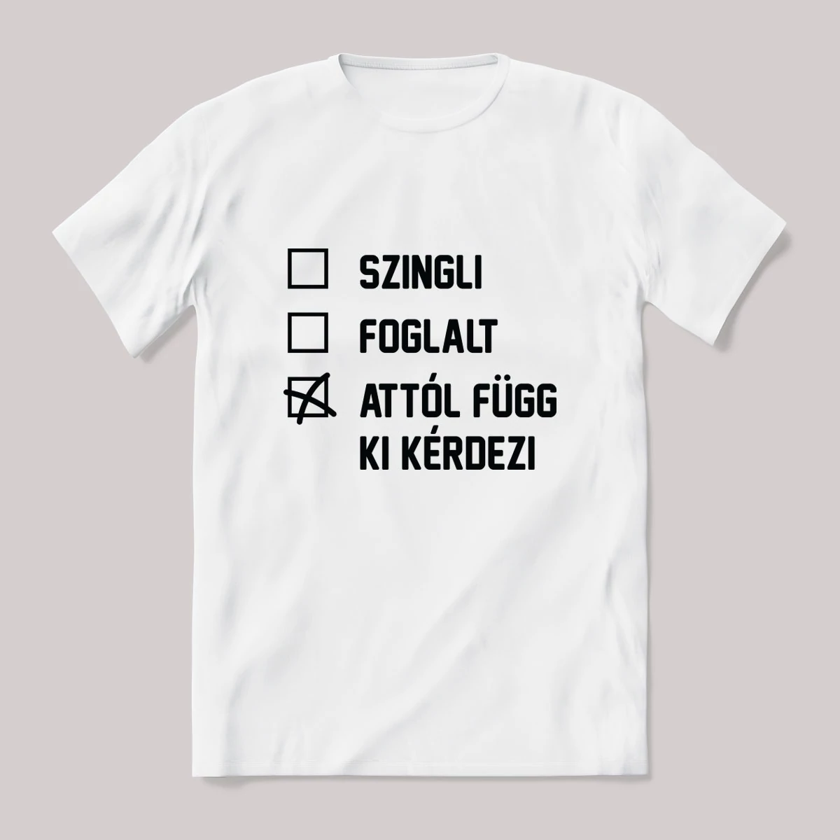Szingli, foglalt, attól függ ki kérdi. Vicces póló. – ha ezt viseled, mindenki tudni fogja, hogy nem csak stílusod, de humorod is van! Ez a Szerelem és +18 kategória egyik legmenőbb darabja.