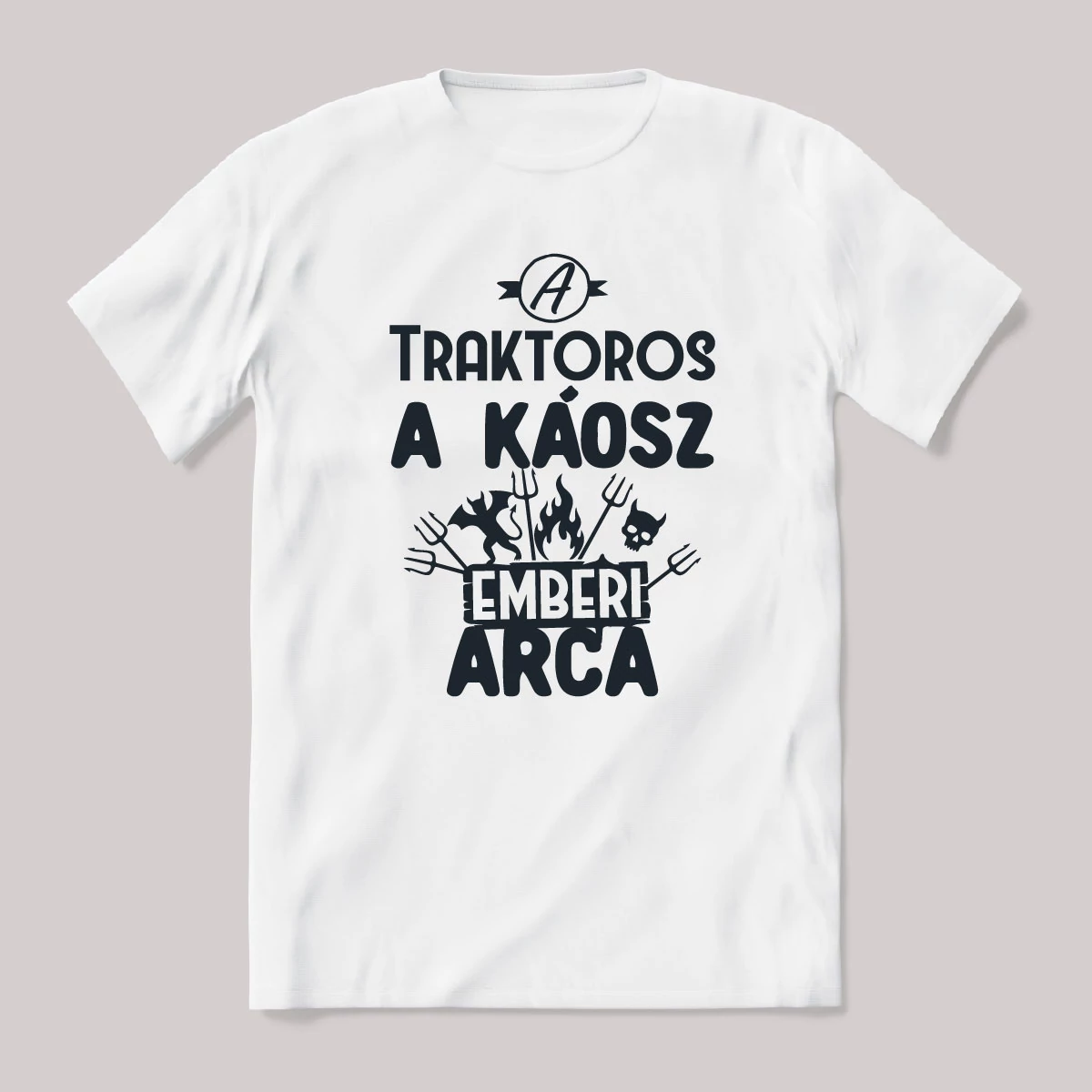 Traktoros, a káosz emberi arca. Feliratos vicces szakmás póló.