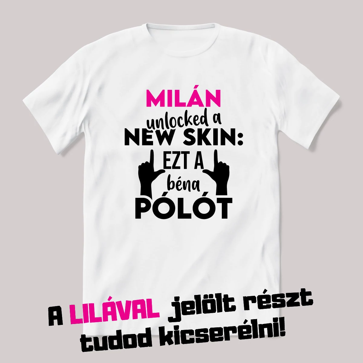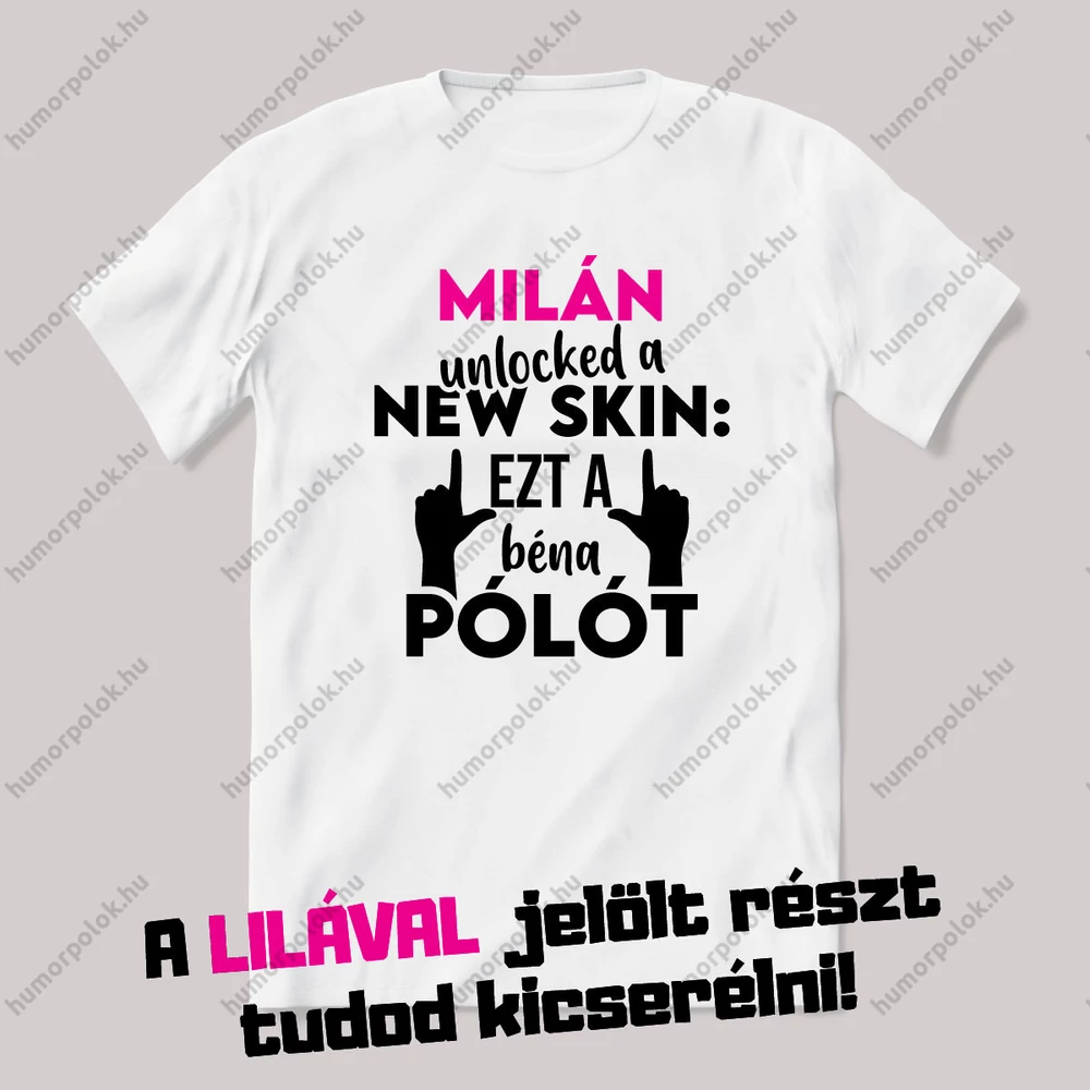 Unlocked new skin, ezt a béna pólót. Feliratos vicces névnapos póló. A termékképen lilával kiírt név helyére bármilyen nevet be tudunk pattintani, amit kérsz.