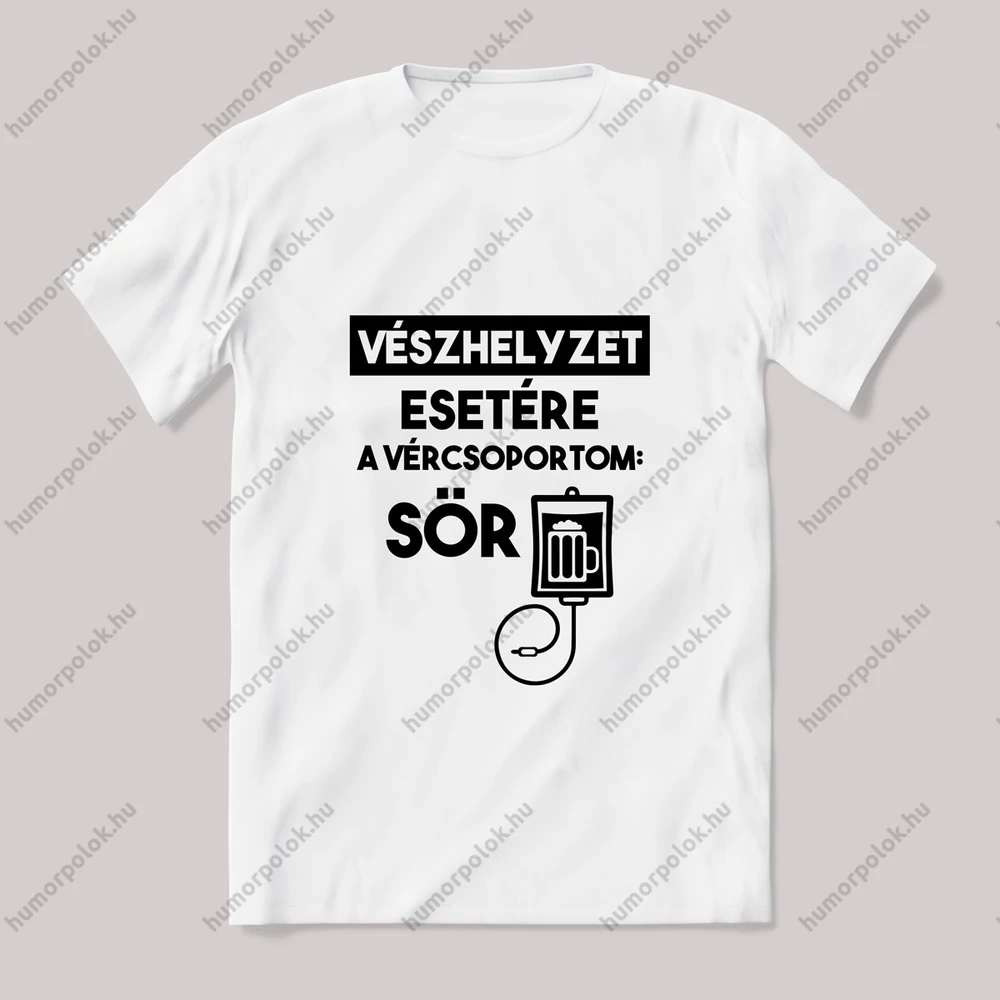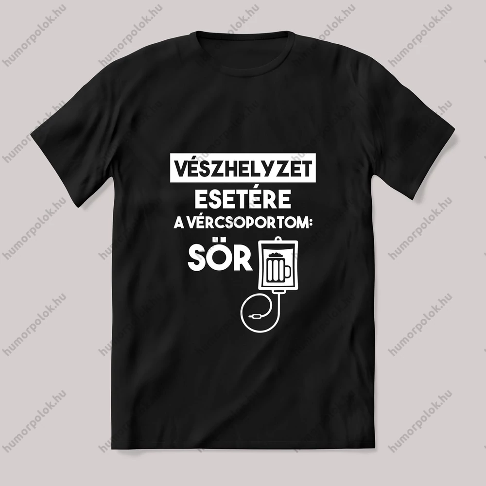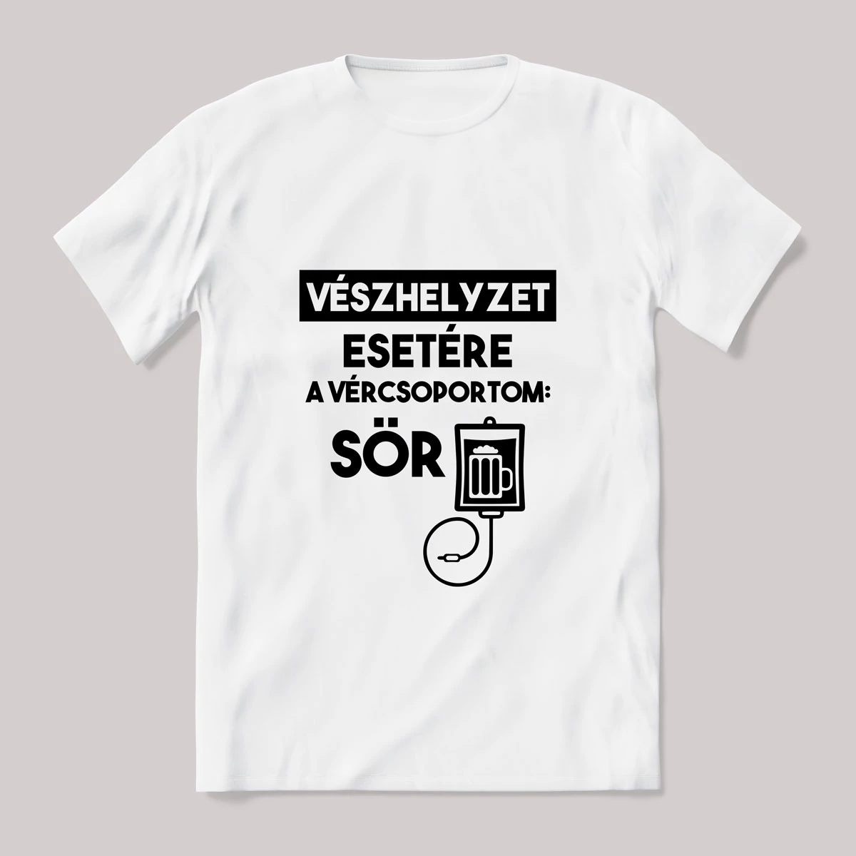 Vészhelyzet esetére a vércsoportom: sör. Feliratos póló – ha ezt viseled, mindenki tudni fogja, hogy nem csak stílusod, de humorod is van! Ez a Sör kategória egyik legmenőbb darabja.