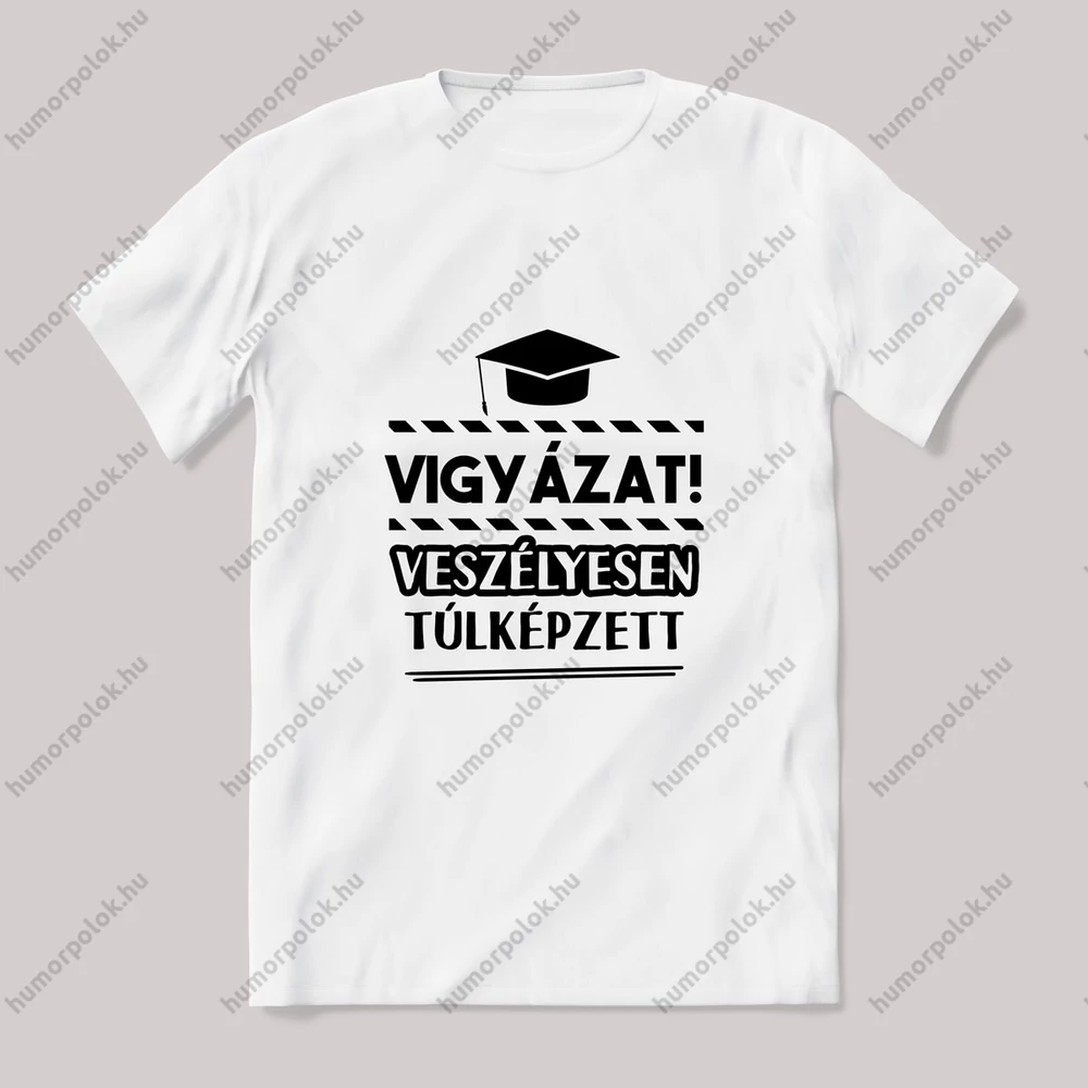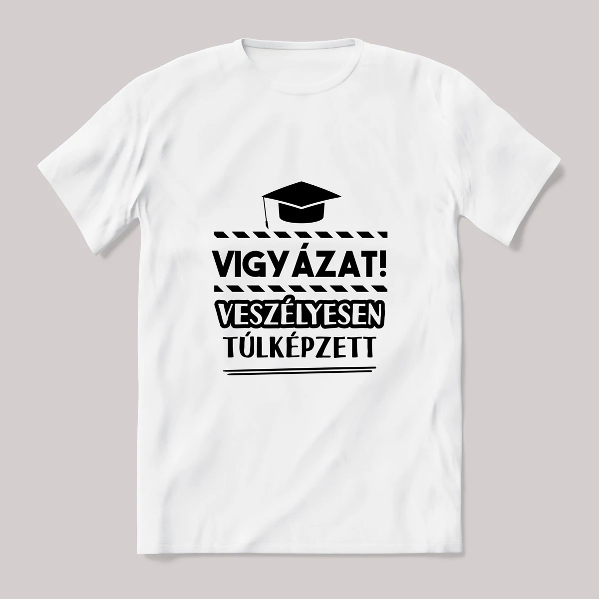 Vigyázat veszélyesen túlképzett. Feliratos póló – ha ezt viseled, mindenki tudni fogja, hogy nem csak stílusod, de humorod is van! Ez a Iskolás / Végzős kategória egyik legmenőbb darabja.